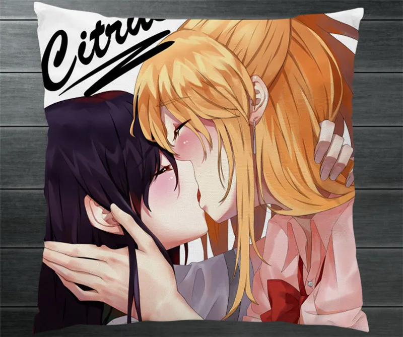 קנו תחפושות לפורים Anime Citrus Aihara Yuzu Aihara Mei Sexy Fanart 40 40cm Pillowcase Pillow Case Cover Otaku Manga Cosplay Gift Bed Sofa Car Decor